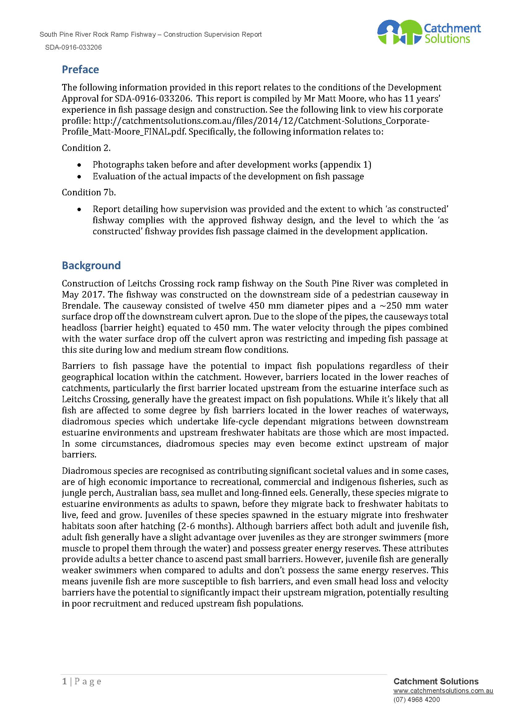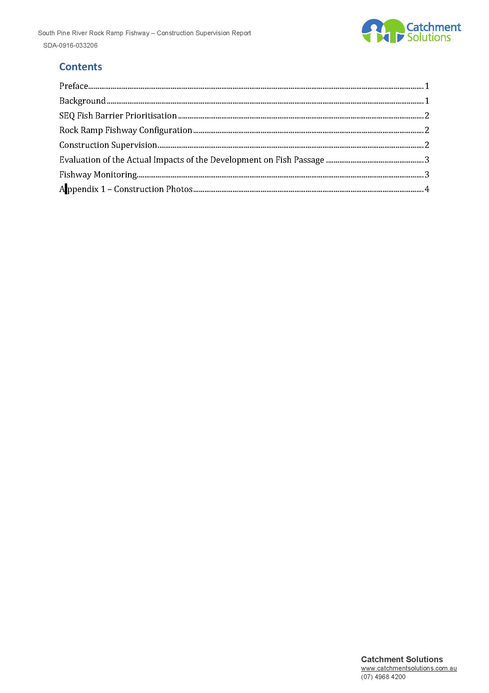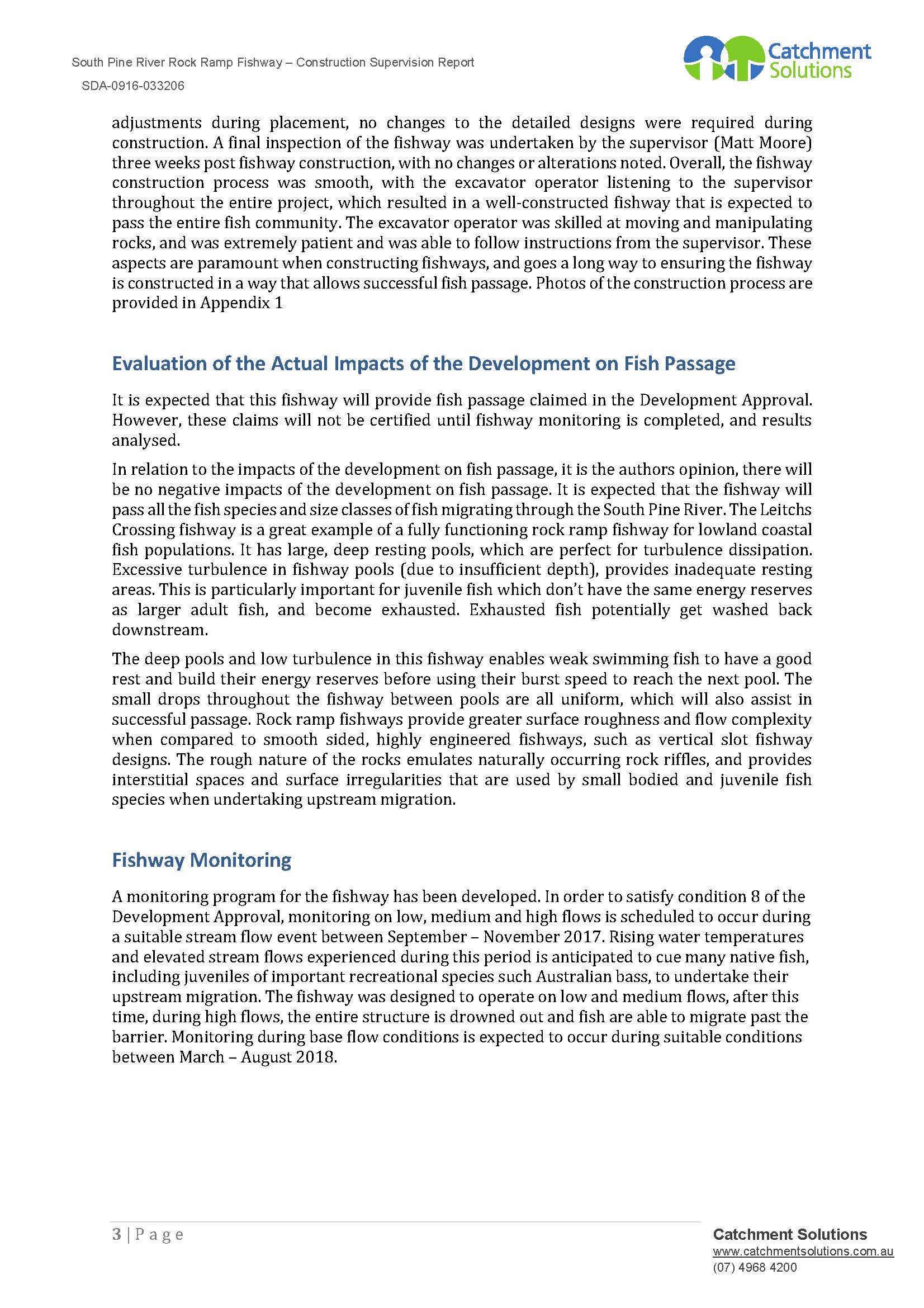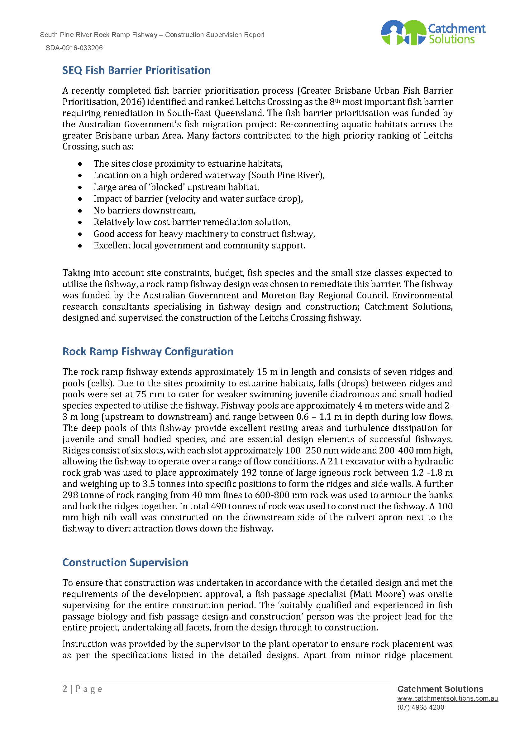 Attached: South Pine River Rock Ramp Fishway Construction Supervision Report