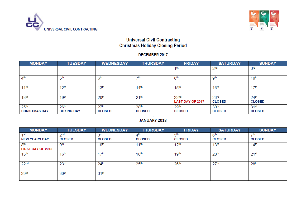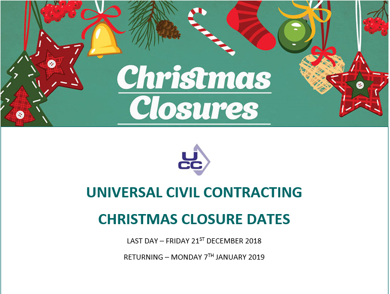 Universal Civil’s Christmas Closure Dates for 2018