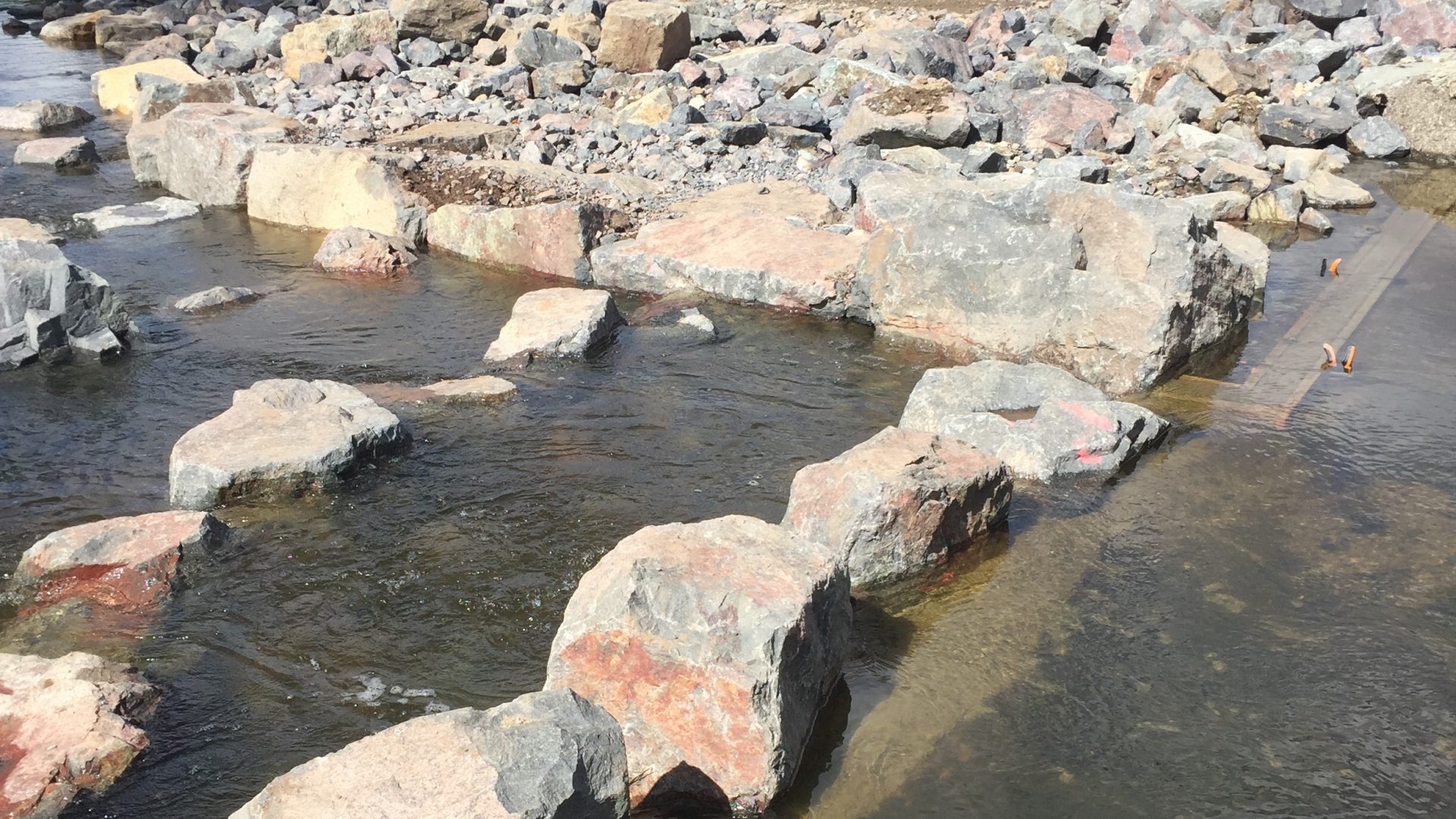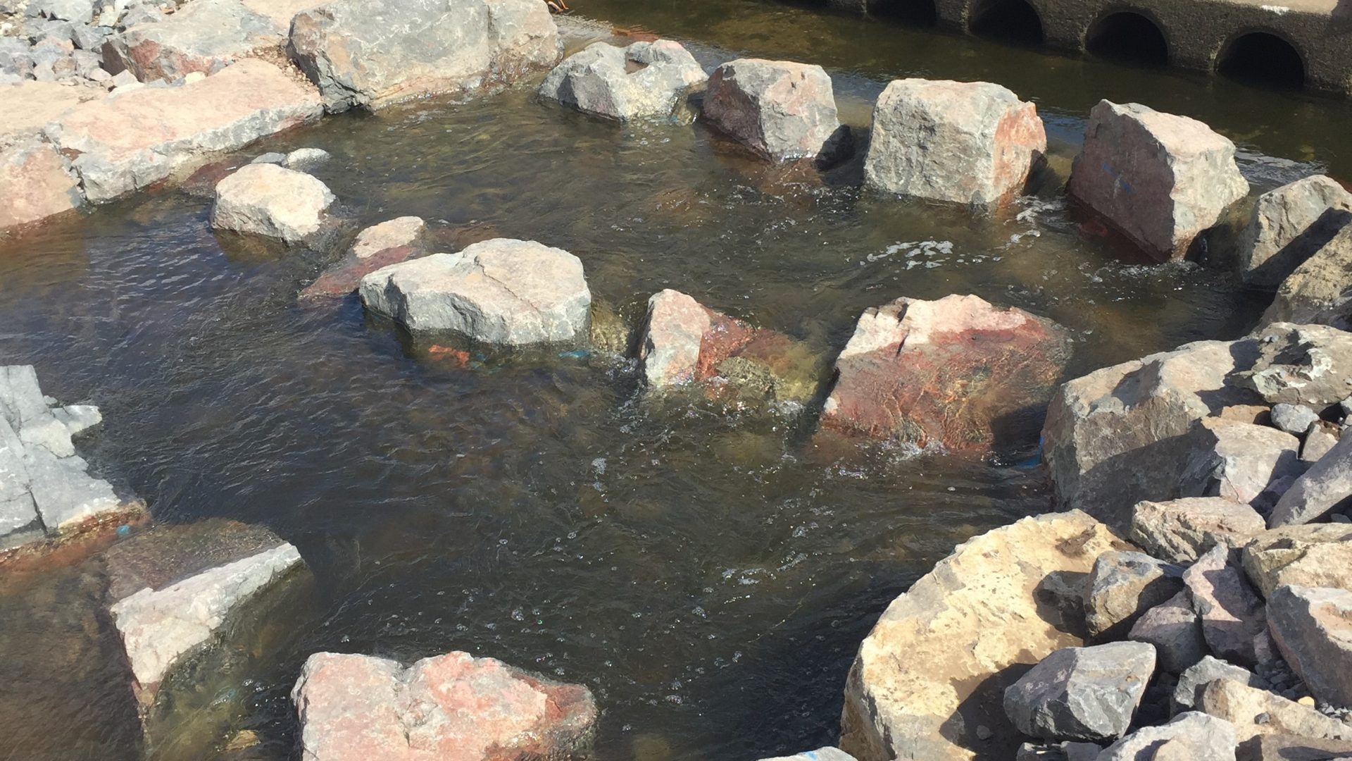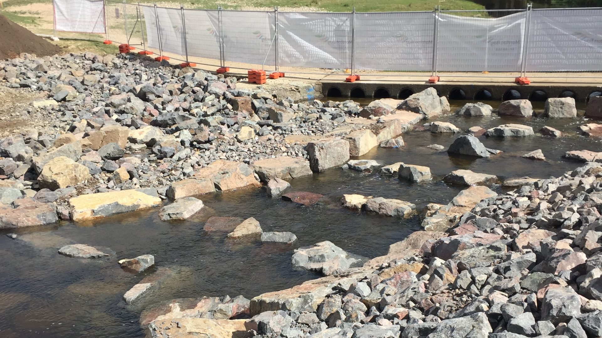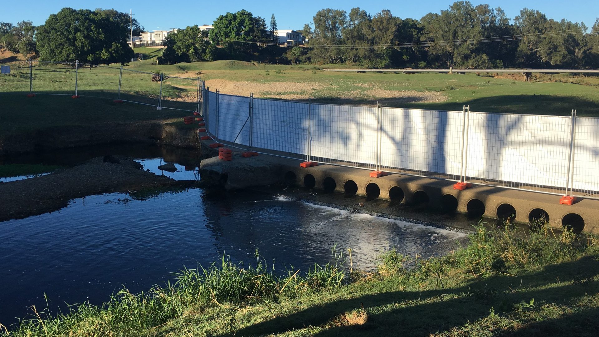 The fishway was constructed on the downstream side of a pedestrian causeway in Brendale consisting of twelve 450 mm diameter pipes and a ~250 mm water surface drop off the downstream culvert apron.